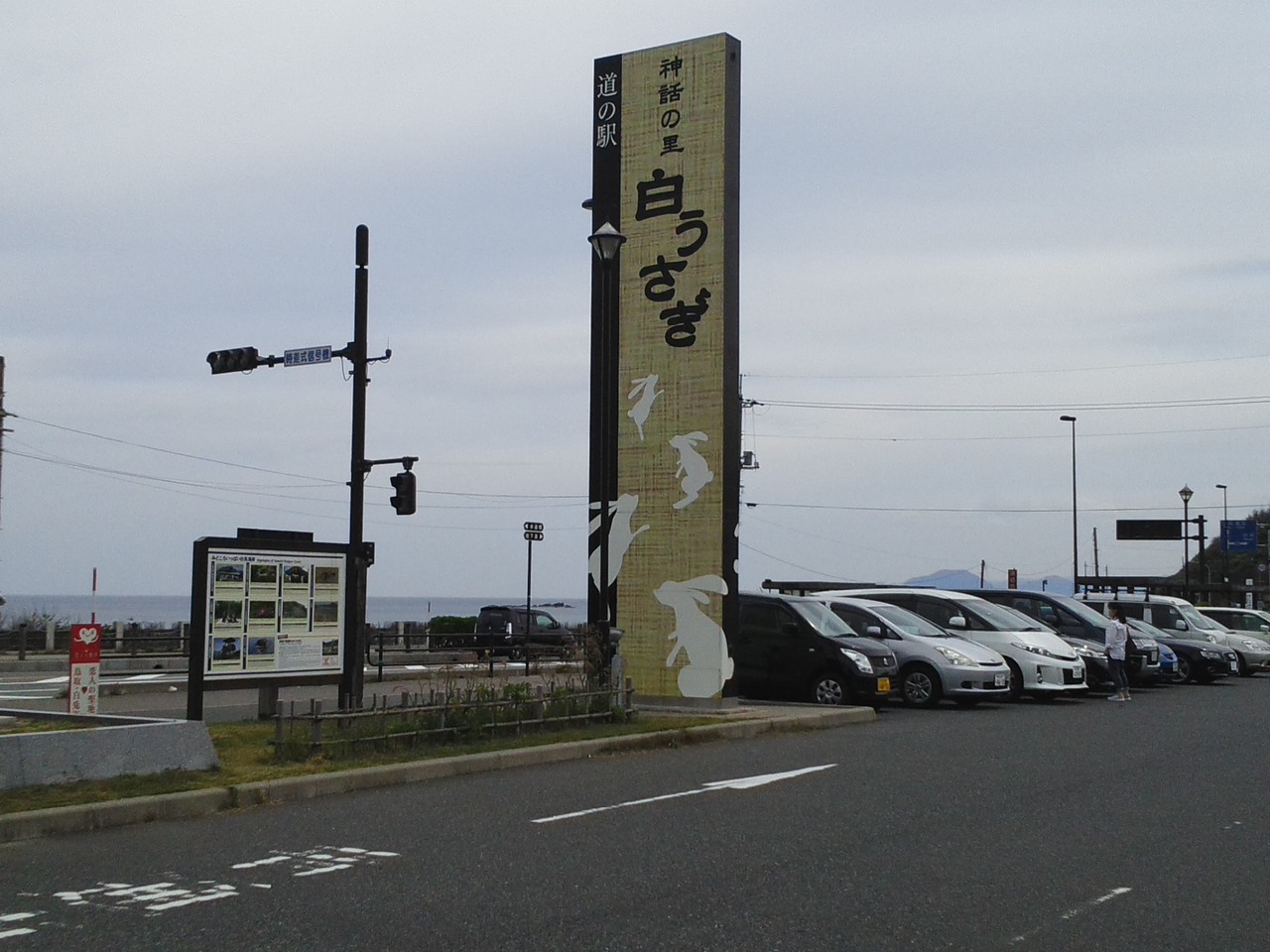因幡の白うさぎの神話の地である白兎海岸は国道9号線沿いにあり目の前には日本海が広がり道の駅神話の里「白うさぎ」の後には白うさぎを祀った白兎神社があります。