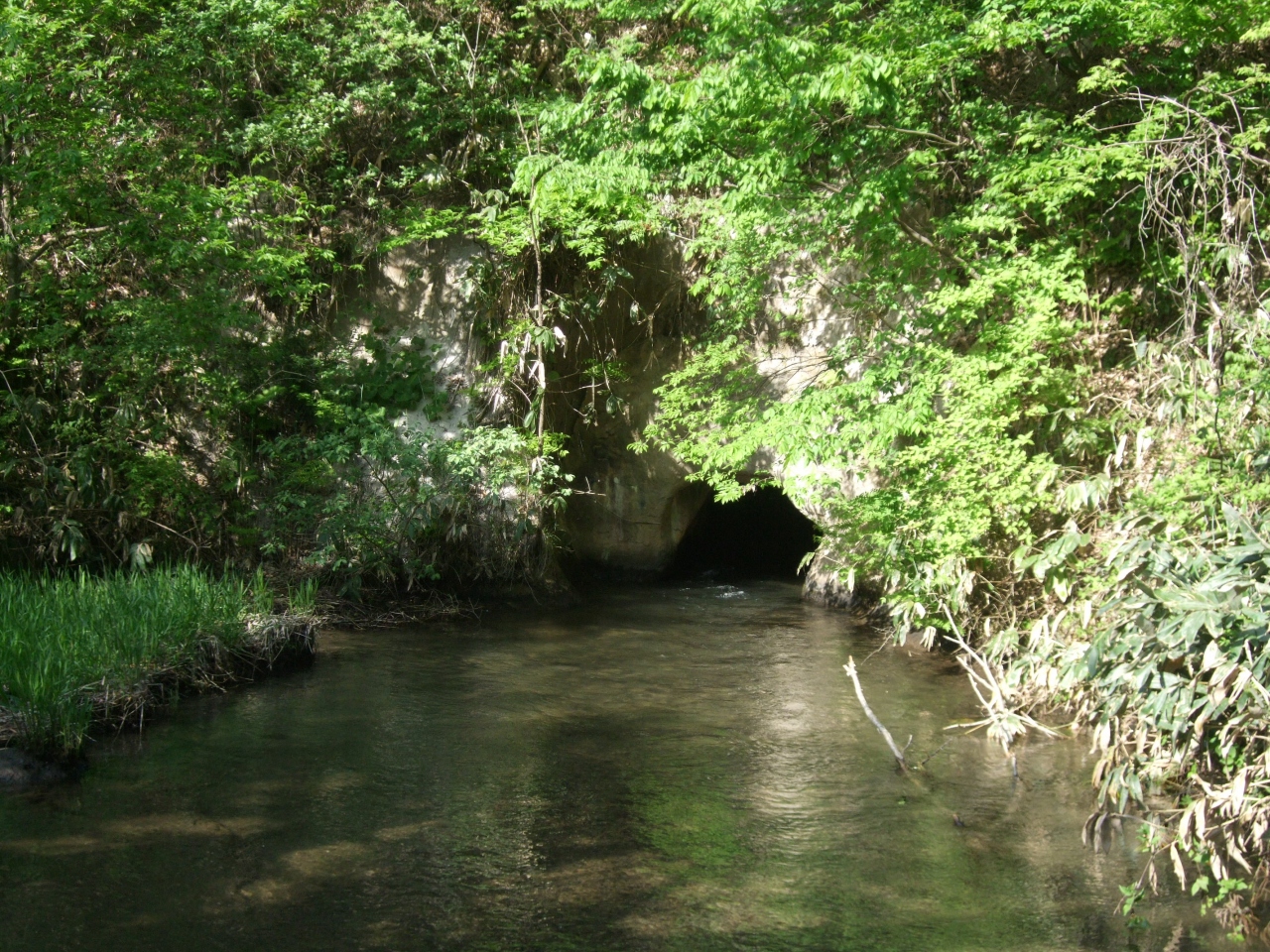 1623年から1832年に用水路として建設されたものですが、戊辰戦争の時に、白虎隊士中二番隊20名がこの洞穴を通って逃げてきた、という話が残っています。