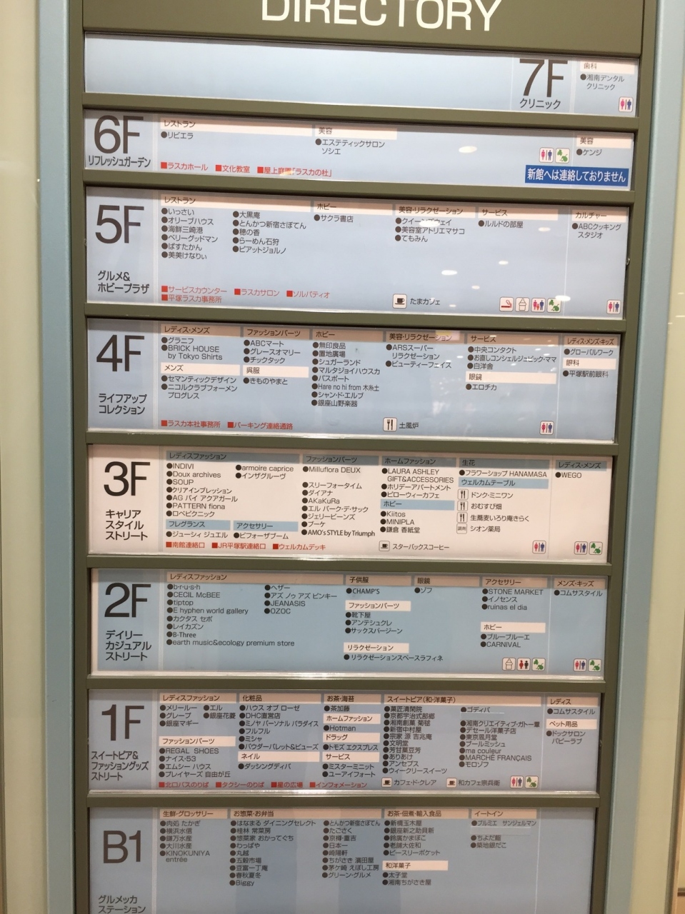 JR平塚駅の北口側の駅ビルです。改札口を出てすぐに3階のフロアに直結するので、大変に便利です。お店の構成もファッション中心でなく、生活雑貨から食料品、本などのホビーやクッキングスクールなど幅広いので、地元の人にとってはなくてはならないデパートでしょう。