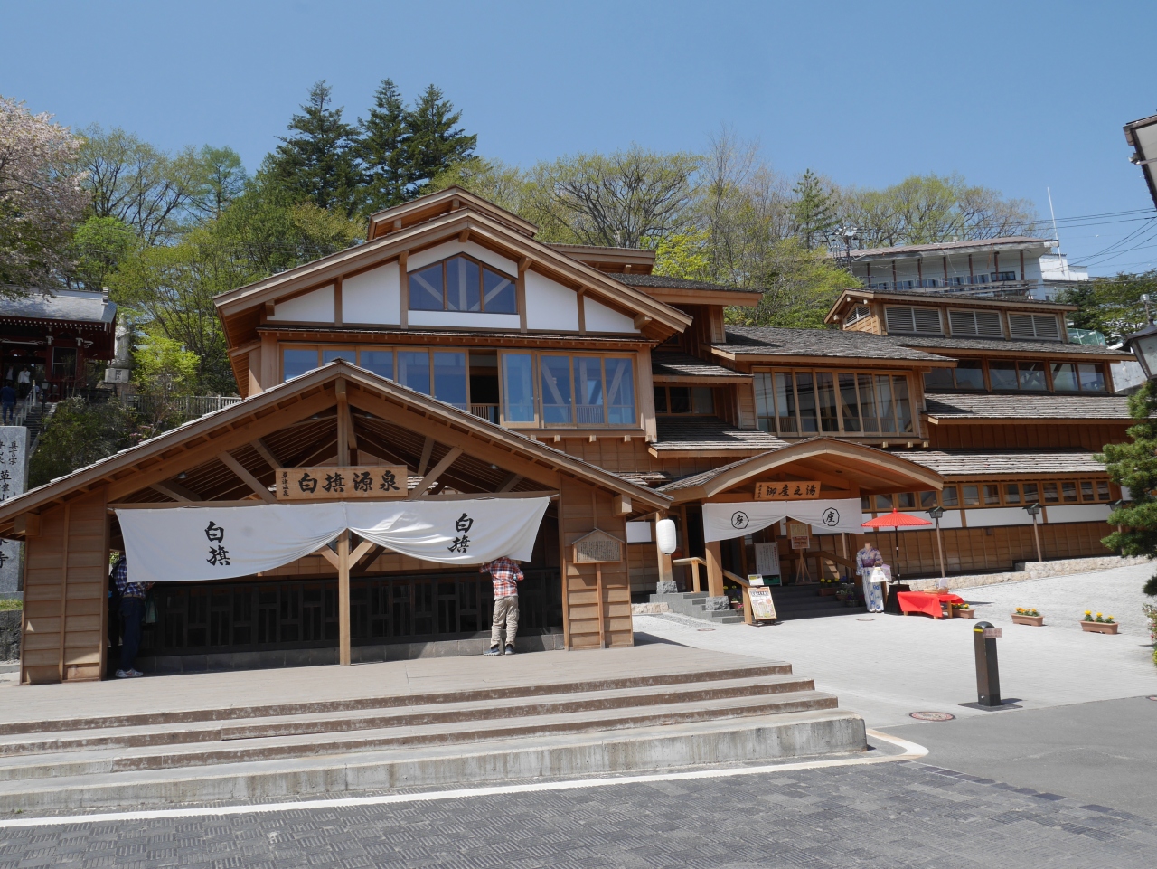 湯畑を囲む広場の、白旗源泉と白旗の湯の間の少しだけ奥まったところにあります。