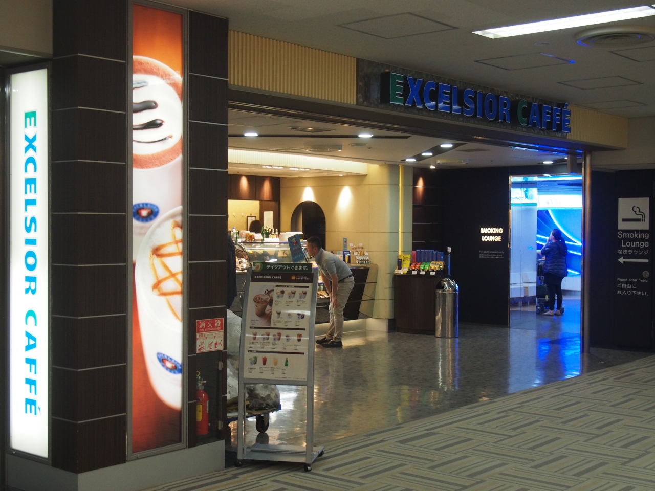 左に歩いて行くと見つけることができるエクセルシオールカフェです。
