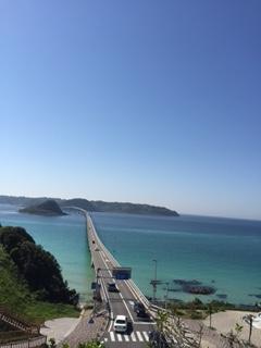 2回目ですが絶景を見れる場所は、橋を渡る手前の高台になったところです。車がたくさん止まっているので行ってみると高い位置から角島のきれいなコバルトブルーの海が見渡せました。高いところから見るのも絶景です。