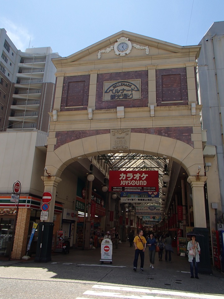 亀山社中から石段を下りて、中通り商店街を歩いておりましたら、屋根のある区画に出ましたが、そちらがベルナード観光通りというアーケード街でございました。