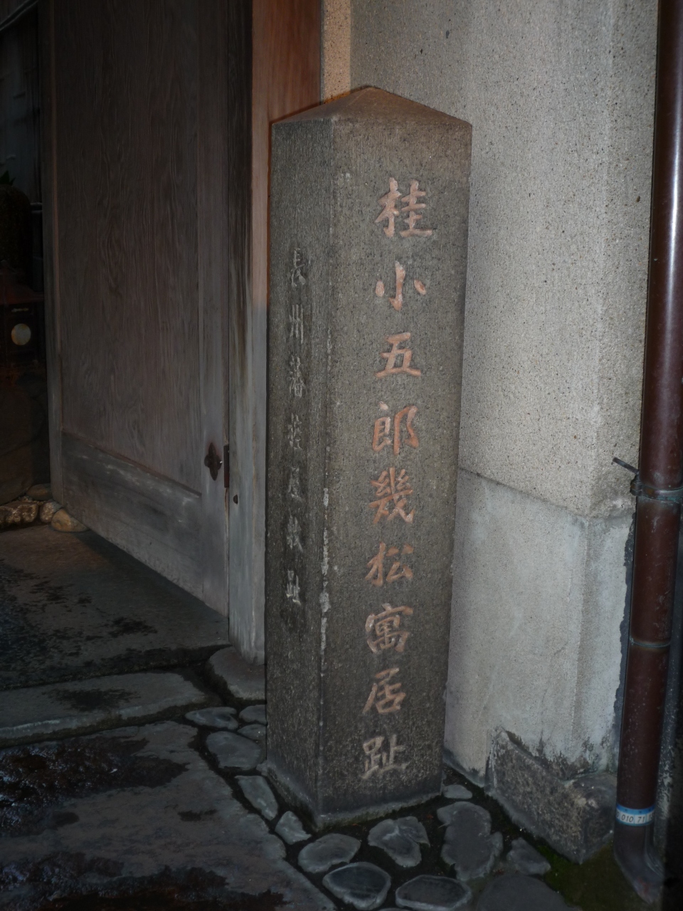 ここは、桂小五郎と、三本木の芸妓幾松(のちの松子夫人)の木屋町寓居跡です。