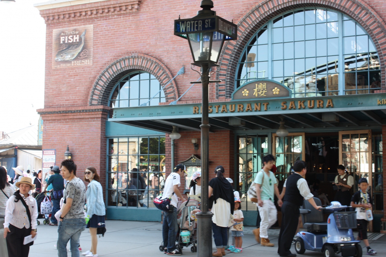 ディズニーシーの入り口にわりと近いところにあります。和食レストランです。シーで唯一かも?。普通のレストランと同じ注文方法です。魚介のまぶし丼、とりのてりやき、てんぷら盛り合わせ、スペシャルセットなど。お子様メニュー、低アレルギー食もあります。いろんな方に対応できるレストランです。