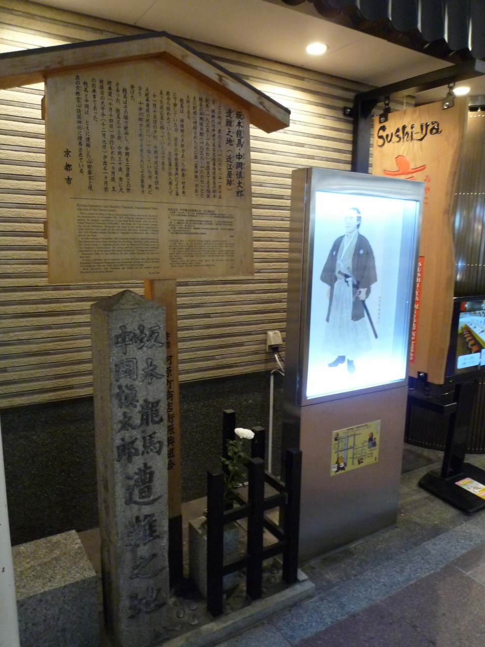 坂本龍馬と中岡慎太郎の暗殺の舞台となった近江屋(醤油屋)があった所です。