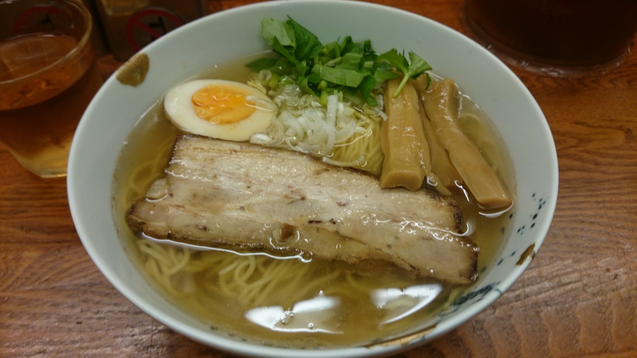 最後にネギと青菜(名前が出てこないが、これが良い)を乗せたあっさりラーメン。