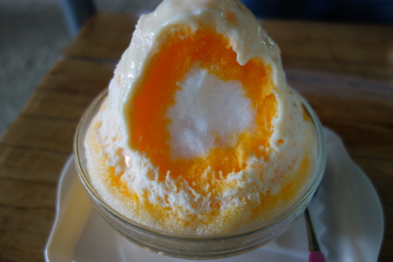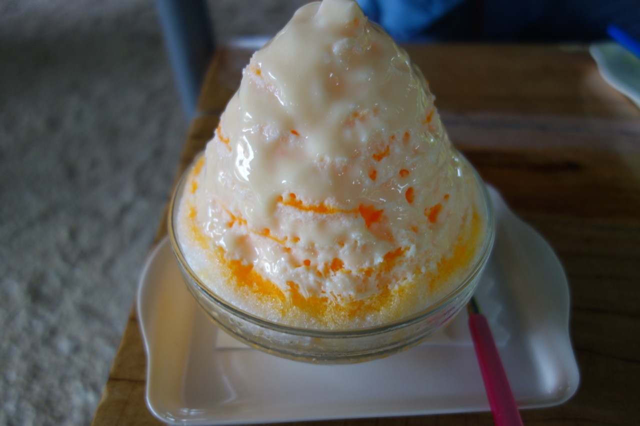 絶対食べようと決めていたマンゴーミルクカキ氷を注文、ふわふわに削られた氷にマンゴーシロップその上に練乳でコーティングしてあり見た目もとてもいい品物です。