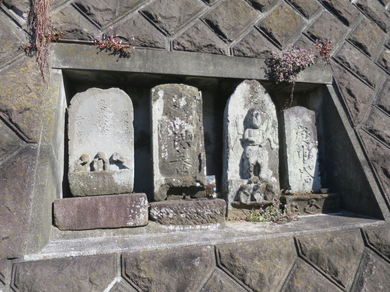 コンクリートで整備されてしまっていますが、江戸時代に作られたという庚申塔が門前にあります。