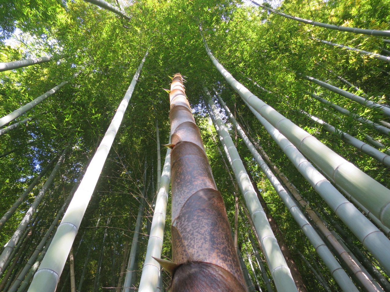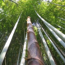 境内の裏手は雑木林や竹林になっていました。ちょうどタケノコの時期で天に向かって雄々しく伸びていましたが、私有地です。