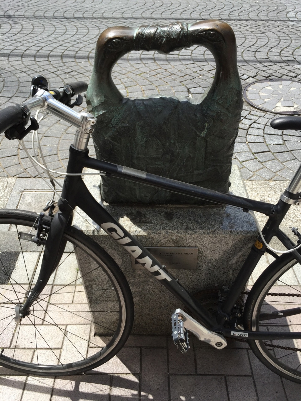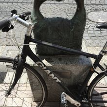 麻布十番商店街のモニュメントの中のひとつで、ルーマニア大使館の協力で、同国の作家が作ったものです。見た目は、2羽の鳥のくちばしを包帯状のもので、括っているような感じに見えます。そのことと、「微笑み」がどう結びつくのか、皆目見当がつきませんでした。