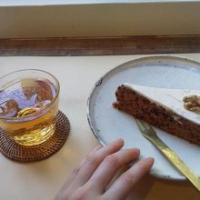 キャロットケーキは意外に大きくて驚きました。