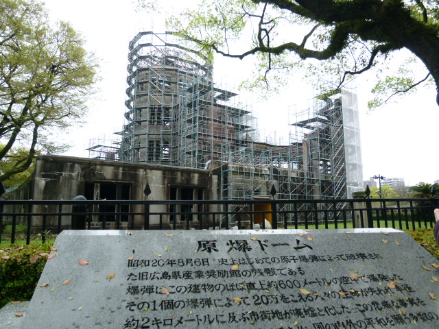 毎年8月に行われる原爆死没者慰霊式をTV中継で観ていますが、厳粛な場だけに張りつめたような感覚を覚えました。今でこそ緑樹が生い茂っていますが、当時の思いに馳せると哀しみがあふれてきます。凄い数の折鶴に平和への願いを託し捧げ飾られています。公園の中心にある原爆死没者慰霊碑(広島平和都市記念碑)があります。形状が円筒形の家の型に造られていて、此処に眠る人々の霊を雨や露に濡れるのをお守りする意味が込められた型になっているそうです。園内は木陰のベンチでちょっとした休憩もとれます。