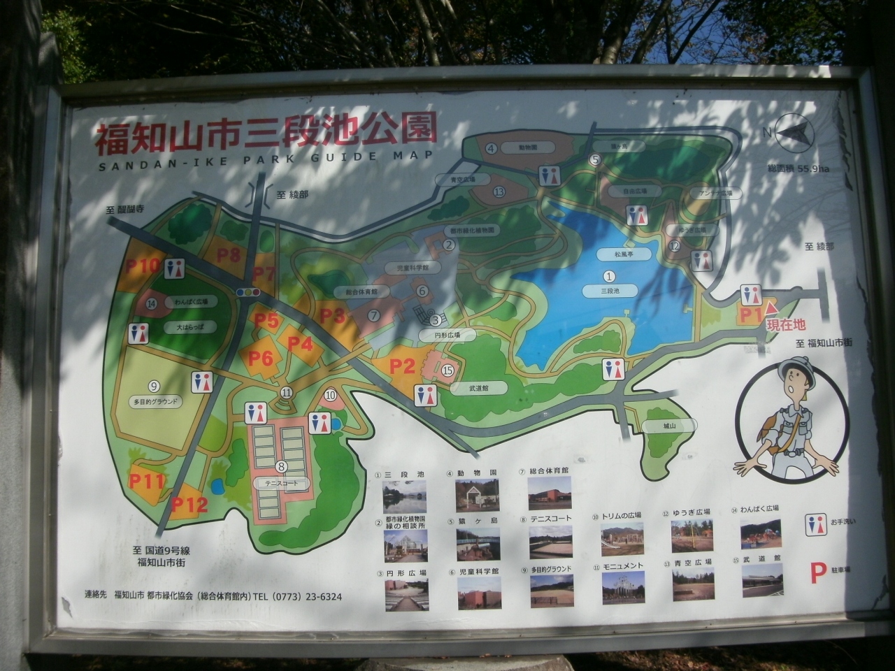 福知山藩主松平忠房候により潅漑用の池として築かれた三段池を中心にした公園で、池の周りには散策道があり、周辺にはちびっこが遊べるブランコや滑り台などの遊具がある広場や、全面芝生張りのひろい原っぱの様な公園などがあり、散策やピクニックなどに良いところです。その他、敷地内には植物園や動物園、児童科学館などがあるので、家族連れで一日遊べるところだと思いました。