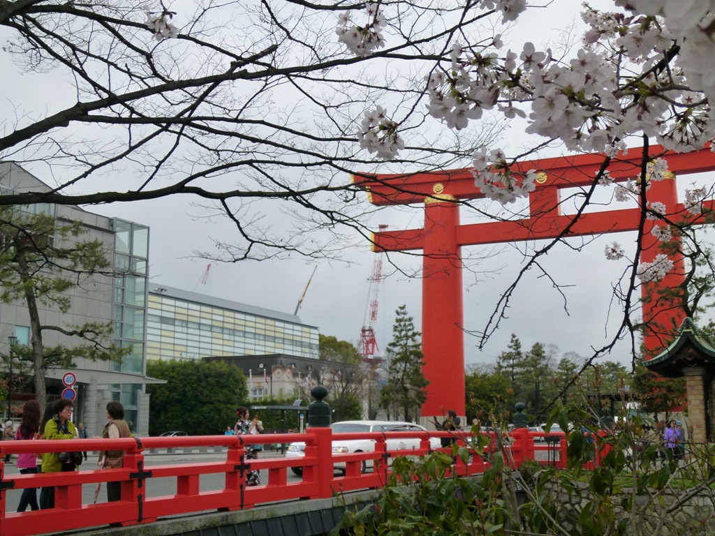 今日は岡崎公園に来ています。地下鉄東西線の蹴上からインクラインを歩き花見してここまで歩いてきました。インクラインの花見も良かったのですが、ここ岡崎公園の花見も良いですね。冷泉通りの桜、濠方向に垂れているのが何とも言えません。また、岡崎公園の中心とも言える平安神宮と桜が良いですね。博物館など見どころも豊富、是非お越しください。