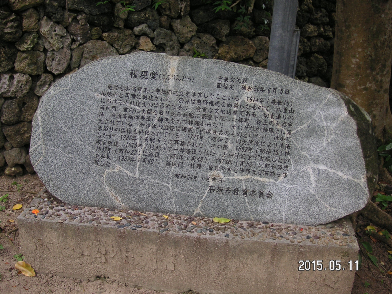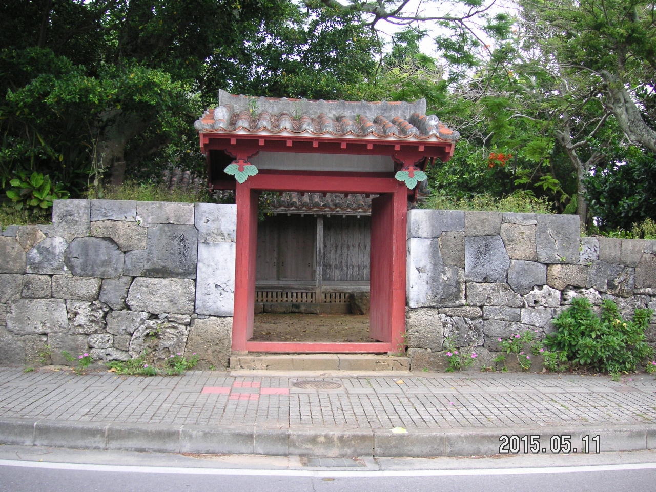 離島ターミナルの近くに石垣島の景勝地として掲載されていた権現堂は、朱色の表門が特徴である。石垣地方で最初の寺院として建造されたとのこと。このとき一緒に建てられたのがすぐ横にある、桃林寺である。道路に面した塀の石積みが珍しかった。