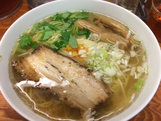 食券を購入し、柚子和風ラーメンを頼みました。出てきたラーメンには三つ葉、ネギ、メンマ、半卵、チャーシューが乗った、あっさりスープにすりおろした柚子の香りが食欲を誘います。チャーシューも分厚いですが、柔らかく美味しいです。