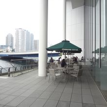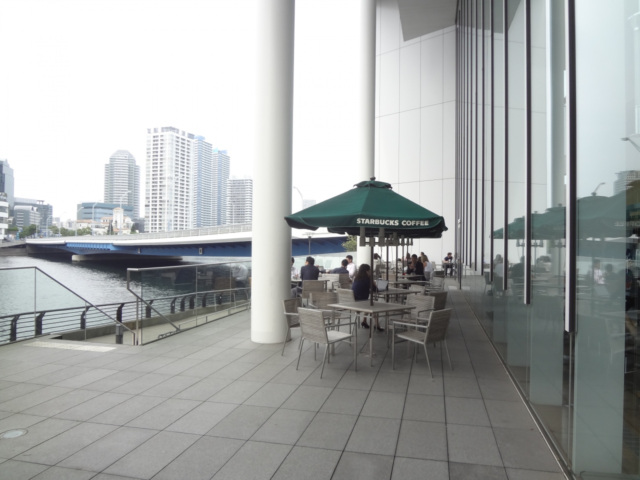 日産本社の1階にあるショールーム内にあるスターバックスです。なのでカタログをもらった後、ここでじっくりと読みふけるのも良いかと。それはさておきここのスタバはとてもくつろげます。座席がゆったりしていて居心地満点です。さらに川沿いのオープン席は風が気持ちよくてちょっとしたリゾート気分です。天気の良い日には最高です。