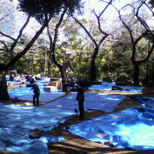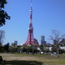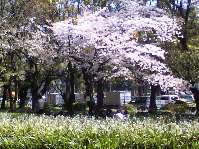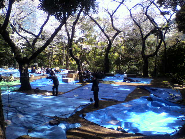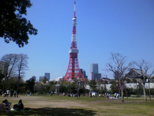 桜が満開で天気のいい平日。芝公園~増上寺のほうへ行ってみました。まだランチの時間なのに、夜のためにブルーシートを広げた場所取りがすごいことになっていました。