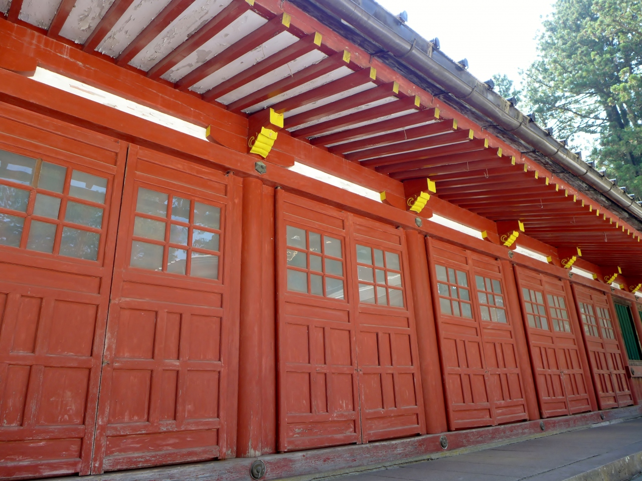 日光東照宮の外れの方にありました、大駐車場に車を停めて東照宮の方へ向かう案内に従って石段を登った所に建つ朱色の大きな建物です。