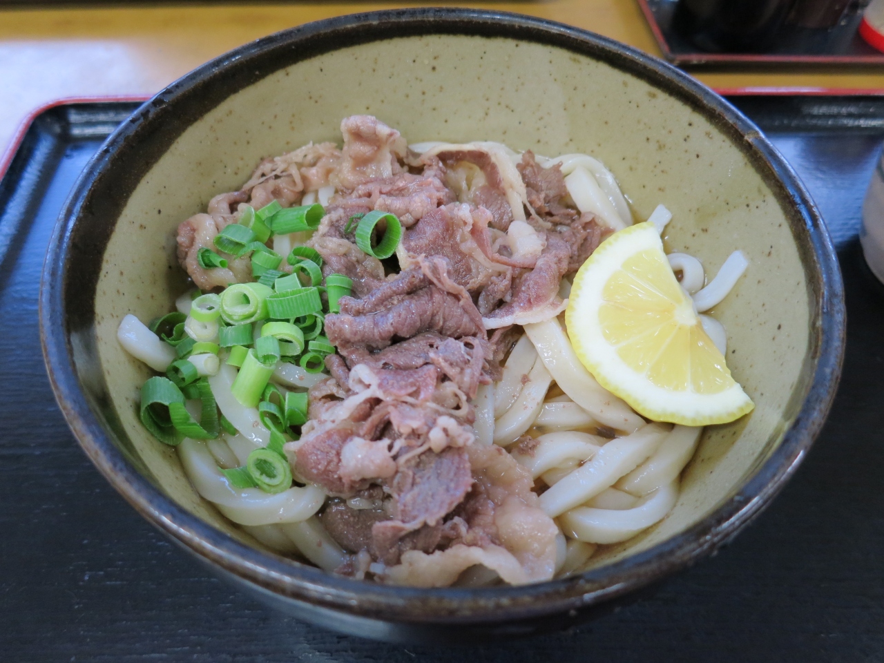 二度目は牛肉入りぶっかけうどんを注文しました。