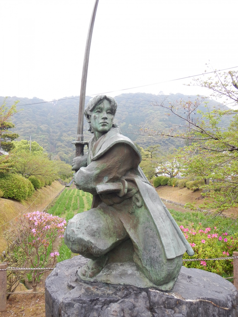岩国・錦帯橋と佐々木小次郎は関係ありません。とってつけた銅像です。とは言うものの、格好良いです。