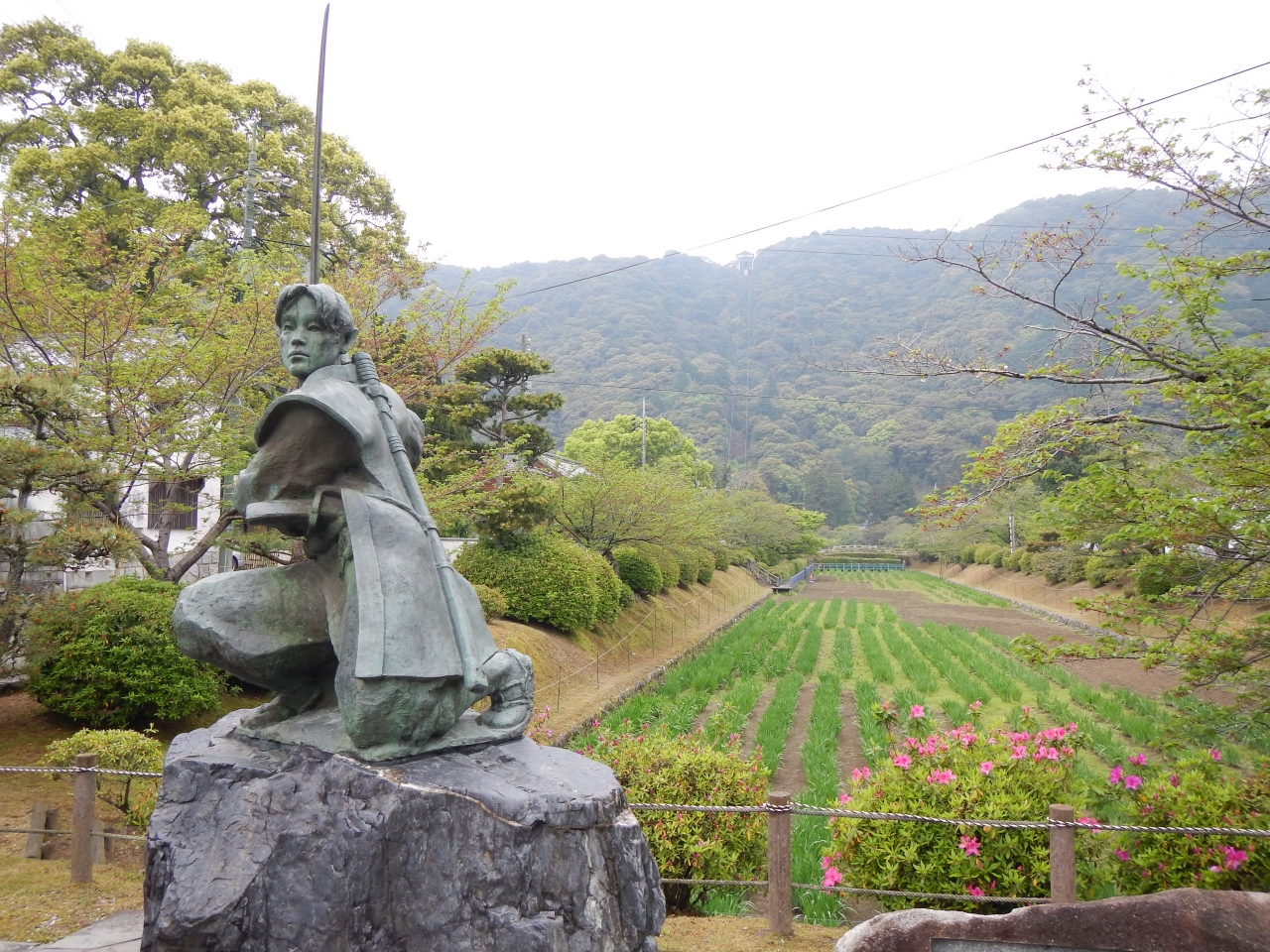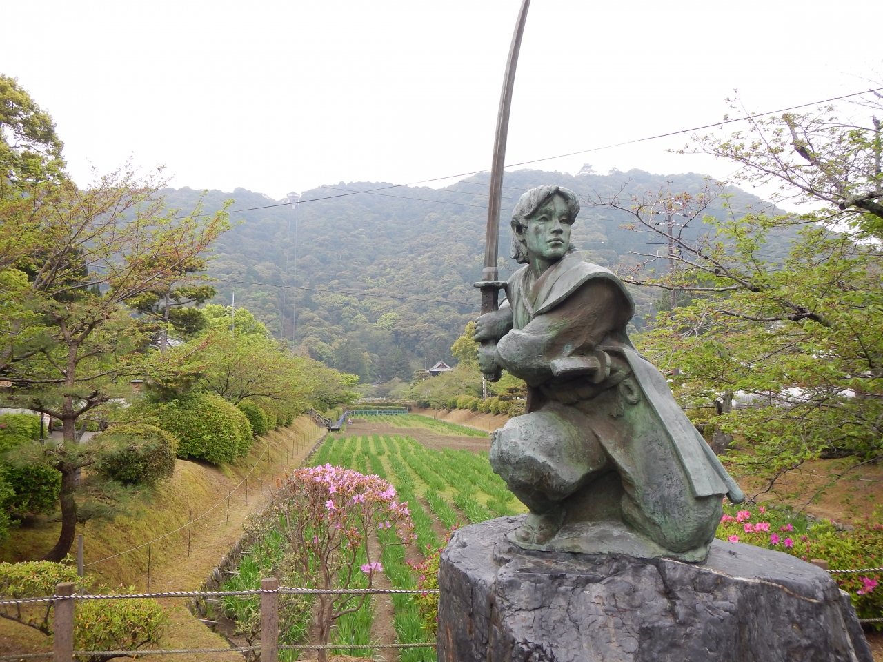 2015年4月錦帯橋を渡って、右へ少し歩いたところにあります。ツバメ返しをしている格好いい銅像です。こんな所にあると、岩国・錦帯橋は佐々木小次郎の出身地か修行をした場所か、誰かと決闘を行ったのかと、勘違いするかも知れませんが、岩国・錦帯橋と佐々木小次郎は関係ありません。吉川英治の小説を元にとってつけた銅像です。