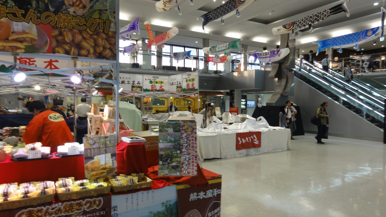 あそ熊本空港の2階の端の方に特設の販売コーナーがあります。地元熊本の農産物を手ごろなか価格で販売しています。佐賀県のガラス製品のアウトレットコーナーがあったこともあります。熊本を離れる際には一度覗いてください。到着時にも時間があれば、1フロア上がってみてはいかがですか。