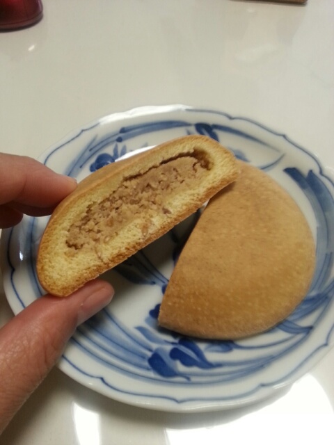 焼き菓子の中に ピーナッツバターや胡麻が使われた餡が入っています。