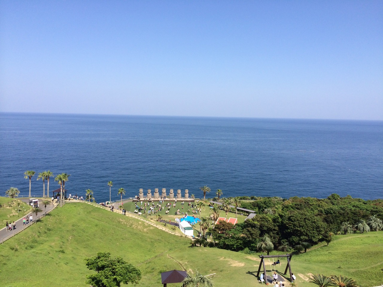 記念写真を撮ったあと、園内を散歩。太陽の丘からの景色は絶景です。海と空だけのシンプル構造、ほんといいです。