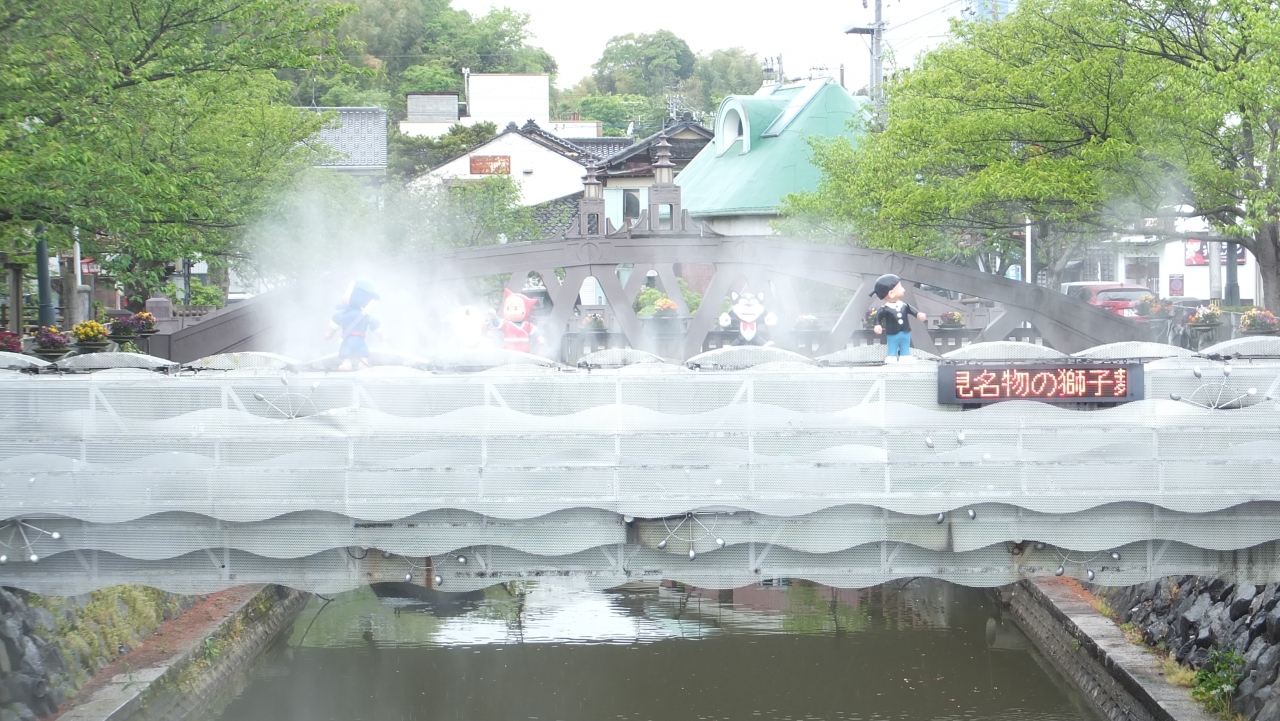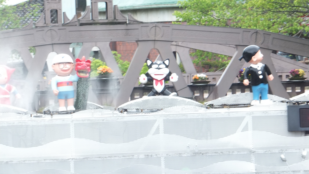 市街の中心部を流れる湊川の「虹の橋」では、「忍者ハットリくん」と仲間たち7体のキャラクターが、朝9時から夜7時(夏季は夜9時)まで、1時間ごと(土日祝は30分ごと)にファンタジックなからくりショーをくり広げます。