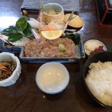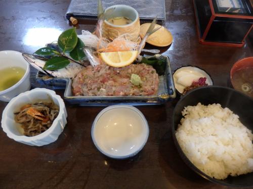 新鮮な魚介類を調理したメニューが並んでいますが、あじのなめろう定食を頼みました。