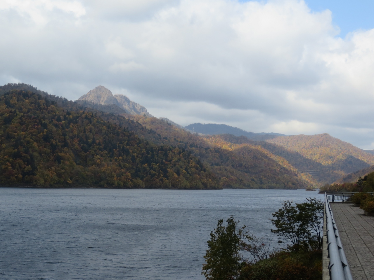 ダム湖で、堤防の上を道道1号線が通っており、何カ所かの展望用の駐車場があります。