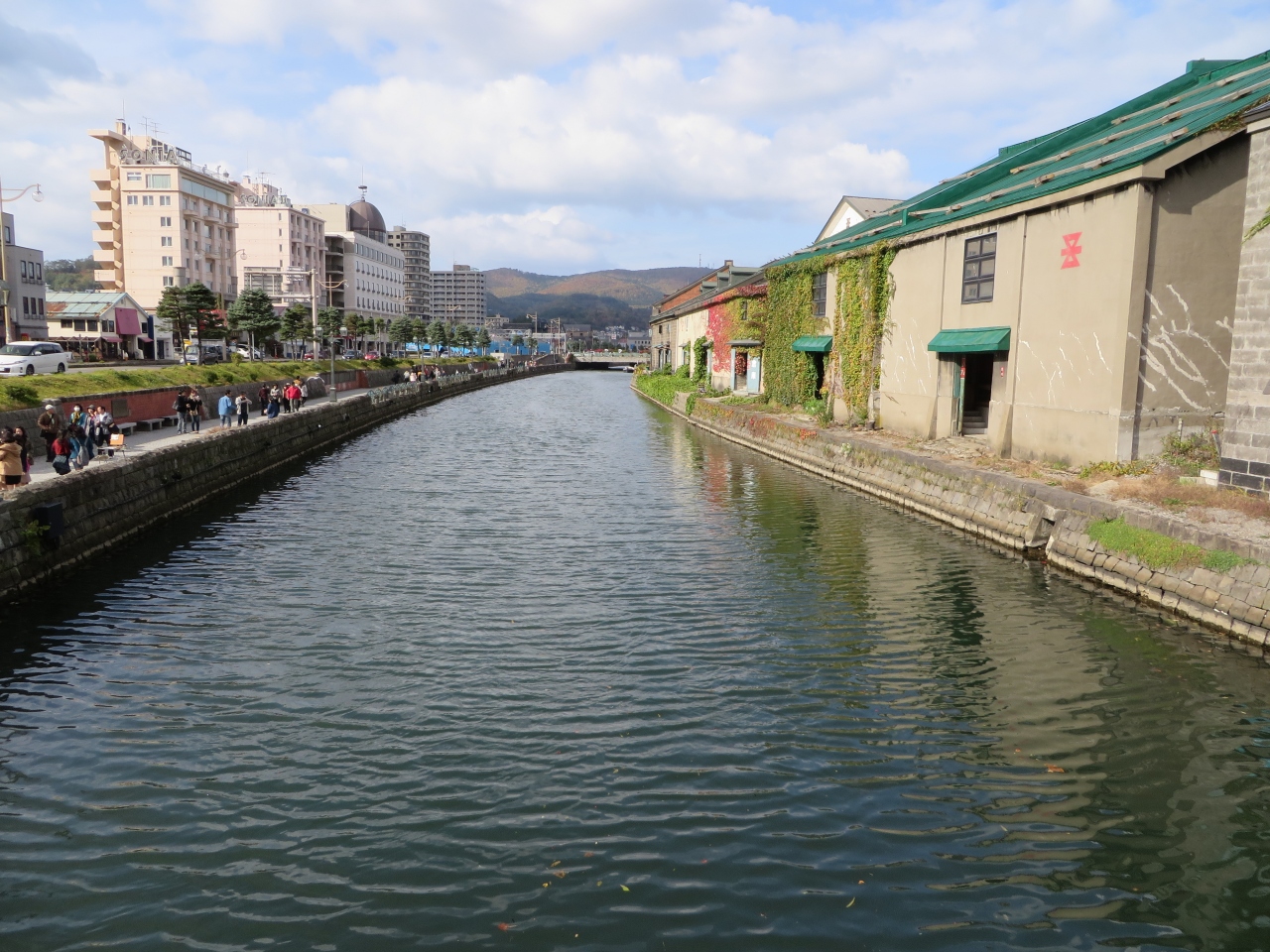 倉庫街が目に入って、その前には運河。小樽を代表する景色だと思います。