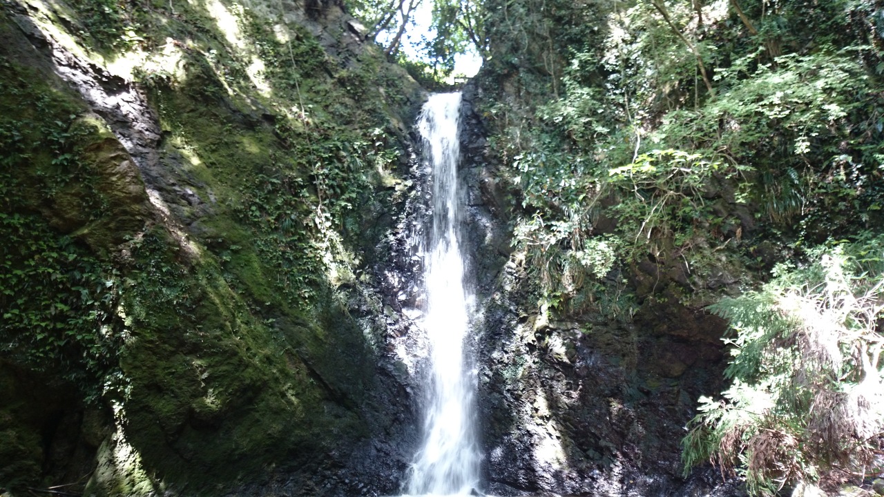 海沿いから見える小さな丘陵にある滝なんで大したことないだろうと思って車で入ってみたところ、思った以上に深い渓谷で驚きでした。高さ15mはあろうかという切り立った谷間にごうごうと落ちる滝は、その日にいった養老渓谷よりも感動でした。