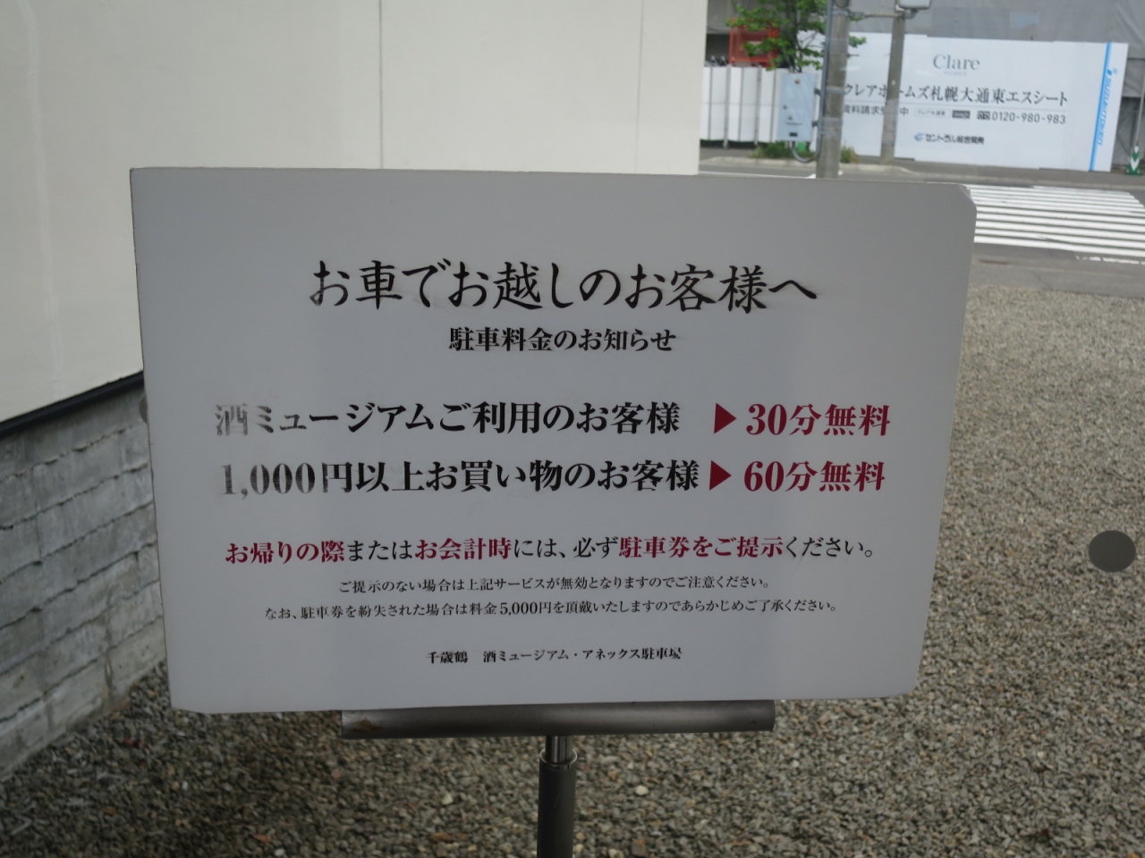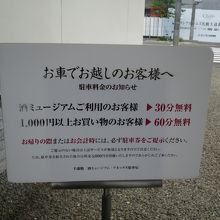 車の場合は隣に20台ほどが止められる駐車場があります。酒粕ソフトをいただいただけでも、30分無料となります。地酒や梅酒など、1000円以上買い物をすると1時間止められるそうです。