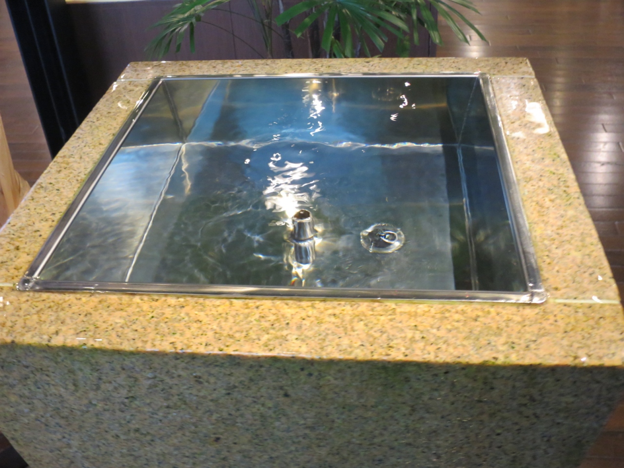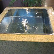 入口すぐ、正面に地下から汲み出しているという仕込み水の試飲コーナーがあります。こちらも車などでお酒が飲めない人でもその場でいただくことができます。