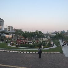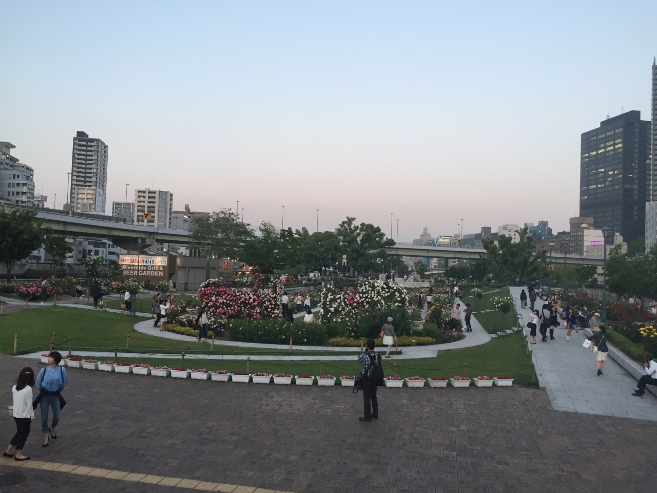 川沿いには遊歩道があり、中之島中央公会堂までバラを見ながら散策することが出来ます。