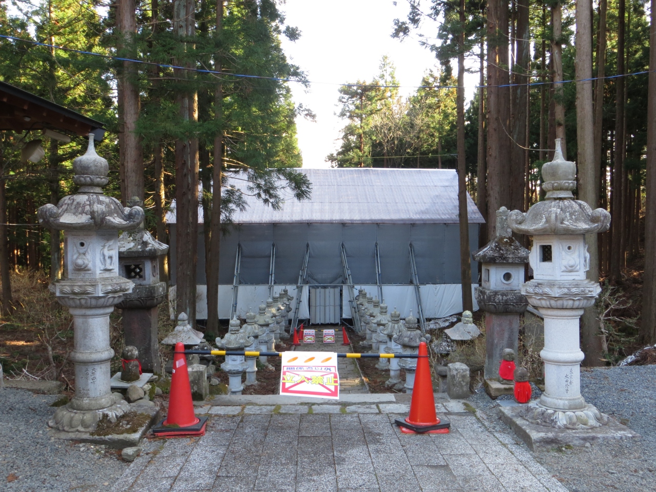 尚、本殿及び山門は現在改修工事中で囲いがされています。