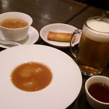 注文したのはフカヒレ姿煮セット(1,800円)と生中。
