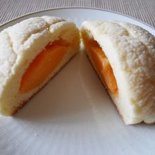 外側は、普通のメロンパンとさほど違いはないですが、皮がパリッとしていて、ほのかにメロンの香りがします。中のクリームは、赤肉メロンのような色合いで、メロンの味をしっかりと感じられるピューレが入っています。このバランスが非常に良く、メロンパンを買うなら木村家と決めています。