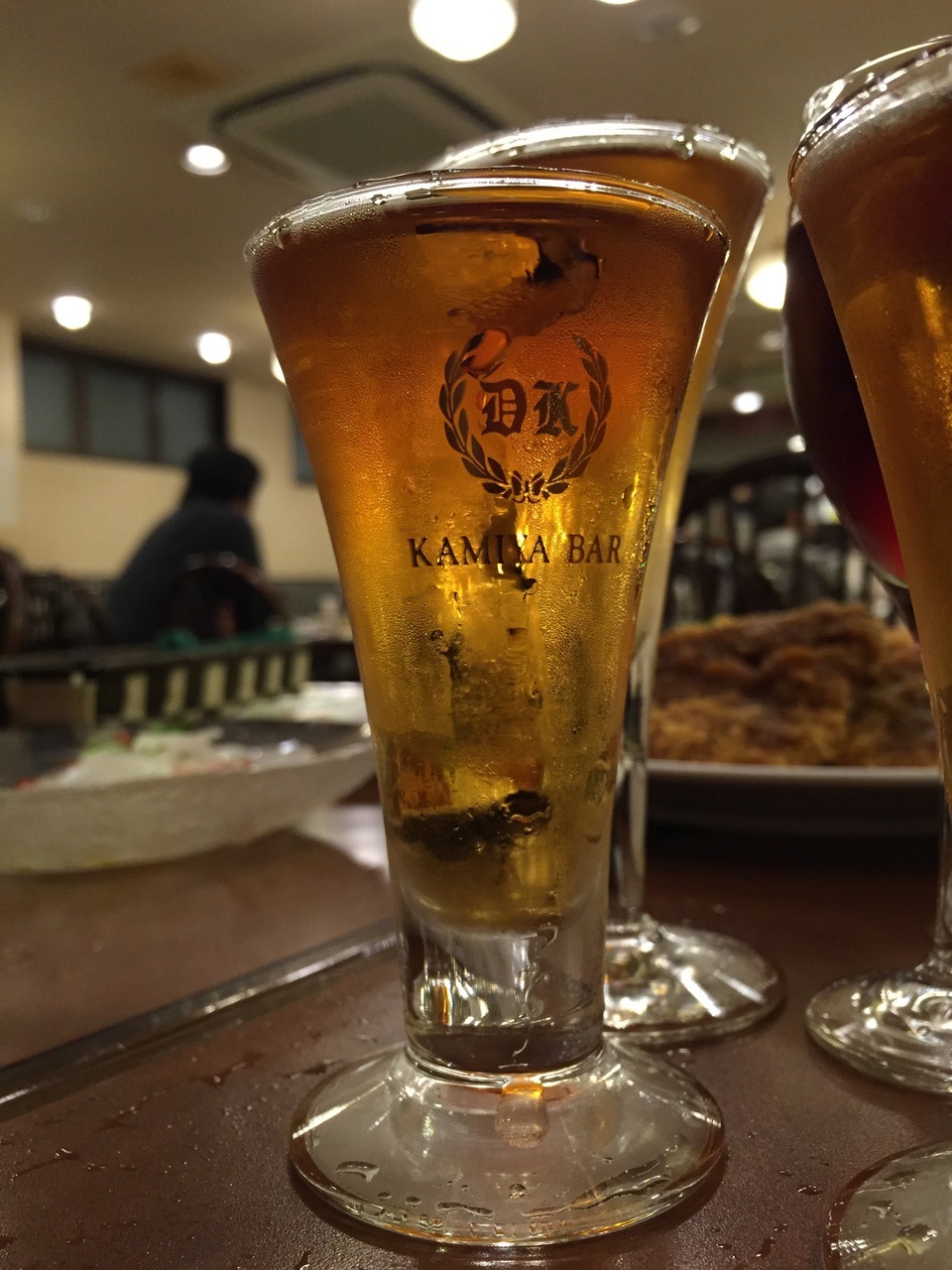 神谷バー名物の電気ブラン。今から味わえば、養命酒の洋酒版的な感じがするが、ウィスキーなどの蒸留酒に飲み慣れていない、明治期の日本人にとっては、こういう飲み方の方が飲みやすかったのだろう。高校生時からここに通っているという友人いわく、神谷バーで飲めるアサヒビールの生ビールは、工場直送なので、他のお店で飲むのとは、全然新鮮で味わいが違うという。たしかに、スッキリとした味わい。