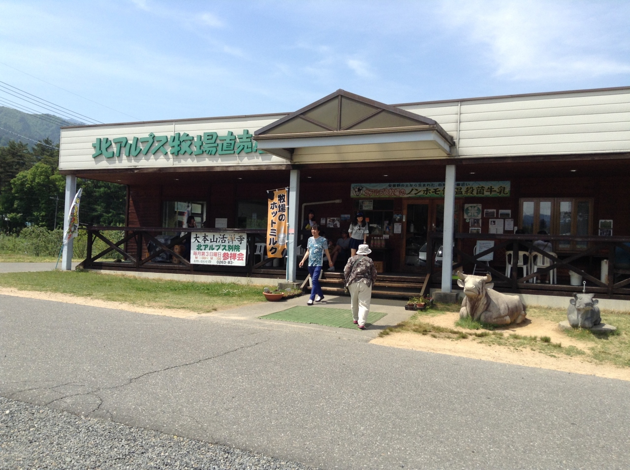 のどかな自然に囲まれた北アルプス牧場の直売所で販売されているソフトクリームは、とても濃厚でコクがあり美味しいです 今どきの綺麗なカフェではないですが地元の人や観光客で、いつも賑わっています 売店には穂高の地ビールや、この地域で作られたパンやチーズも販売されています