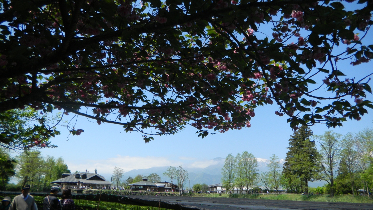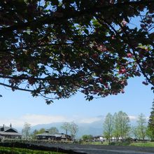 美しいわさび田のまわりに遊歩道があり、ゆっくり回って一時間ほど。のんびり散策できます。高台に上がるとアルプスの山々が美しく、癒されます。
