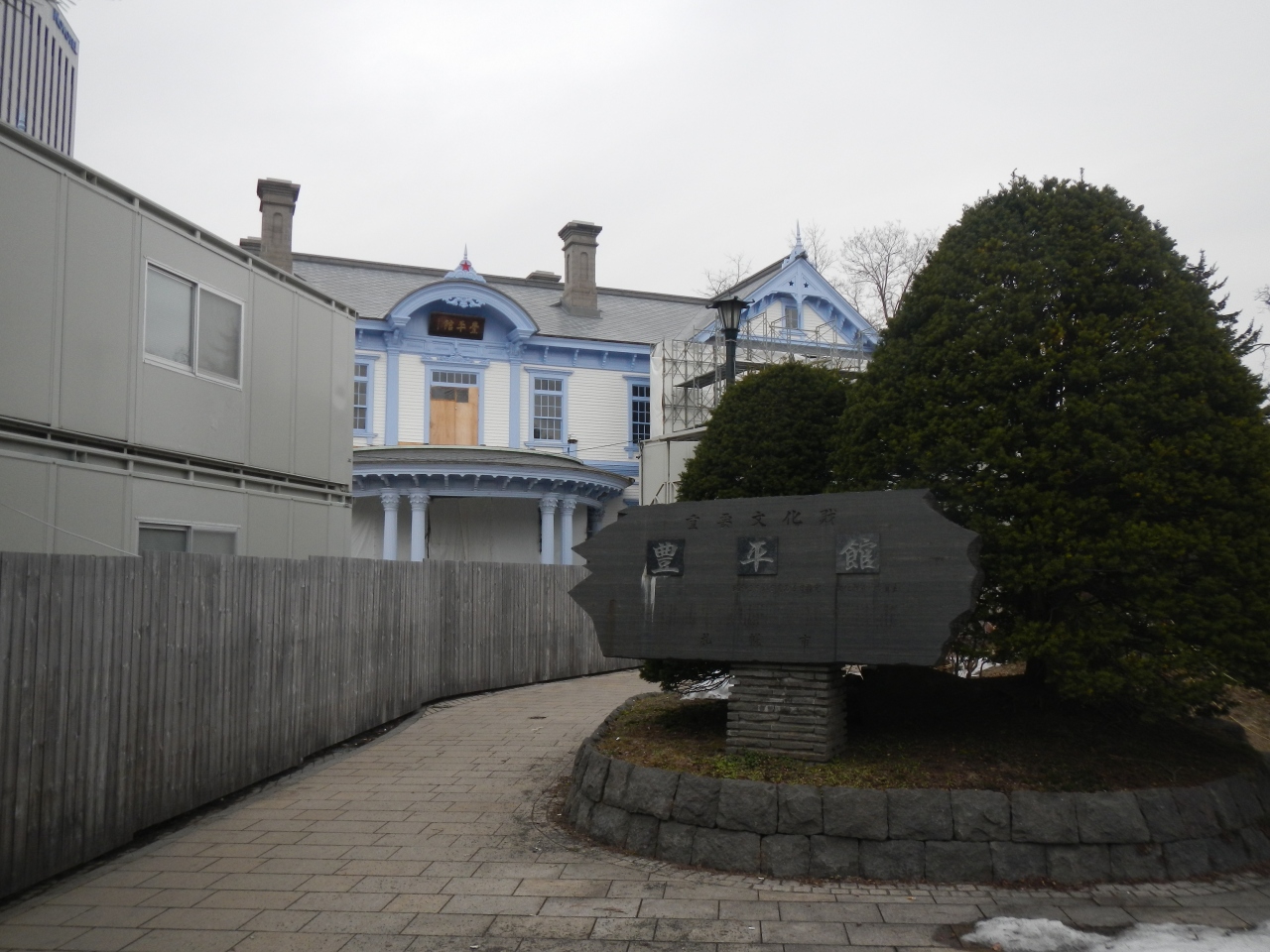 前日「豊平館跡」の碑に出会い、たまたま中島公園近くに泊まったので、行ってみようと思った。行ってみたら工事中で閉館だった。調べてみると2016年3月まで耐震化やバリアフリー化等の工事が行われているとのことだった。来年来たら是非見学したいものだ。