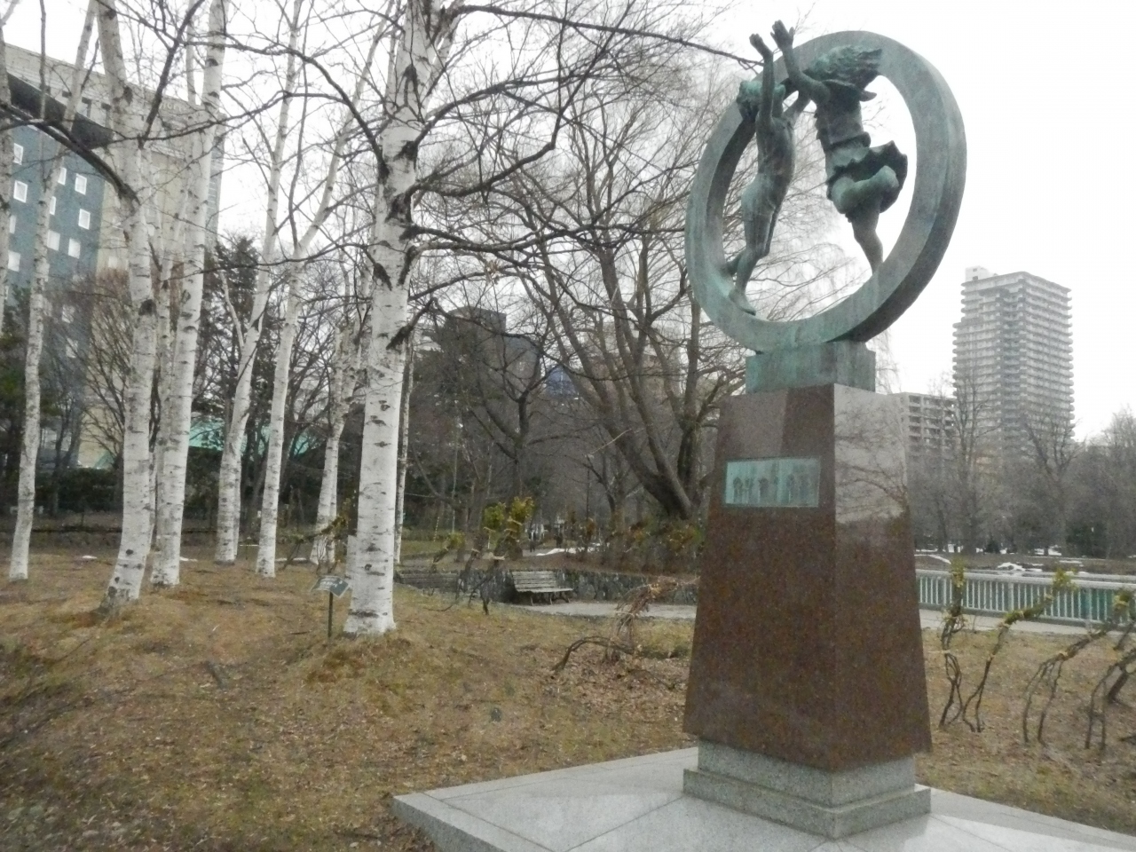 見た時はさほど深く考えなかったが、あとで調べてみた。作者は小野寺健寿氏。1976年に札幌市内の新1年生の記念行事の一つとして建立された像ということだ。だから輪の中の子供たちは新1年生ということになる。そういった背景を知ってから像を見ると漠然と見るよりも感慨がある。