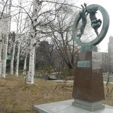 中島公園を散策すると、菖蒲池の前に彫刻があった。輪の中に男女の子供が2人手を挙げているポーズをとっている。