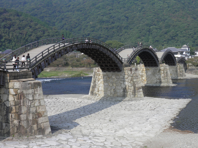 領主吉川広嘉は、杭州の西湖には島づたいに架けられた6連のアーチ橋があることを知り、児玉九郎右衛門に5連のアーチ橋を建設させた。1673年に完成した錦帯橋は、翌年の洪水で流失したものの、同年橋台の敷石を強化して再建した橋は、昭和まで続いた。