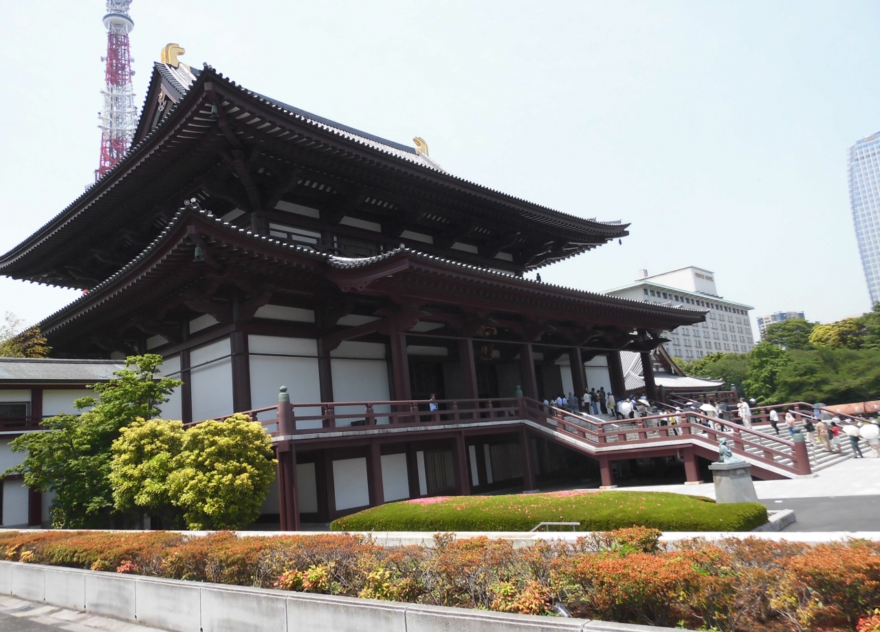 浄土宗大本山も根本道場として、昭和49年(1974)に再建された。石段を登りきった2階が本堂である。堂内には、室町期作の御本尊阿弥陀如来、両脇壇には右に高祖善導大師、左には宗祖法然上人の御像が祀られている。有名寺院では御本尊を秘仏とするものが多々あるなかで、増上寺ではいつでも御本尊とお会いできるのは、嬉しい限りである。