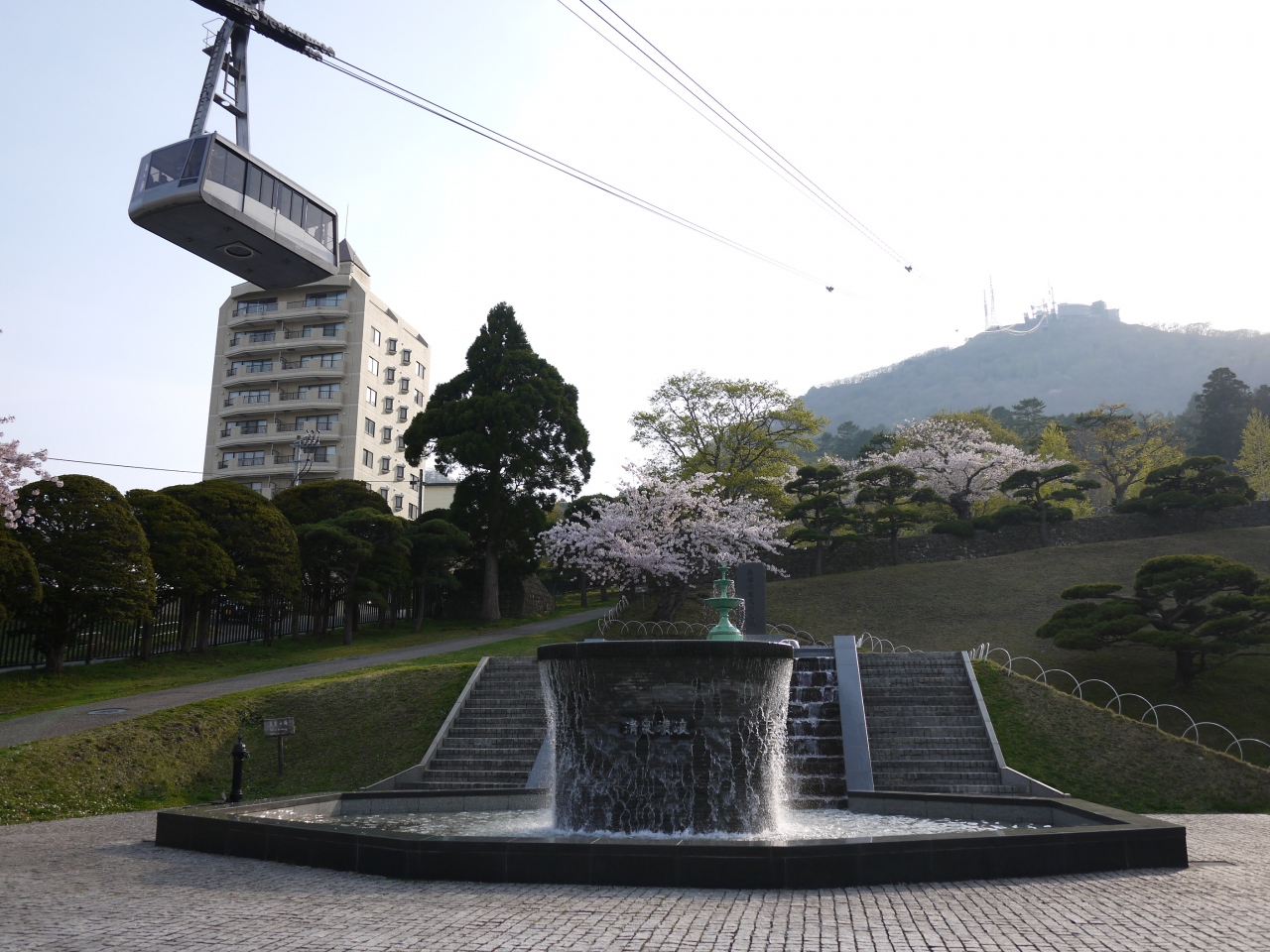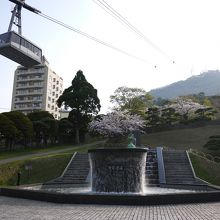 敷地内には綺麗な芝生や噴水もあり、家族でのんびりロープウェーを眺めながら過ごしたりするのに良い場所に思えます。